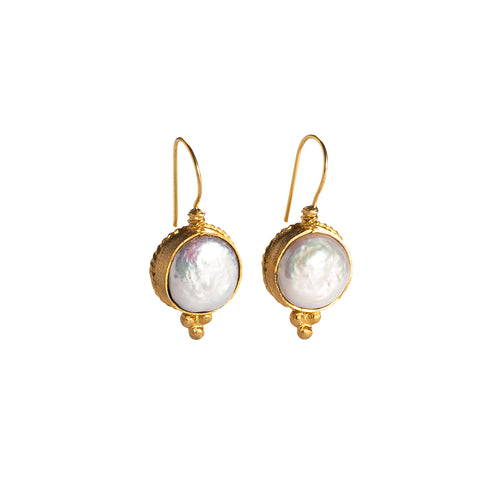 Pearl and 24k Gold Fill T Bar Dangle Earrings