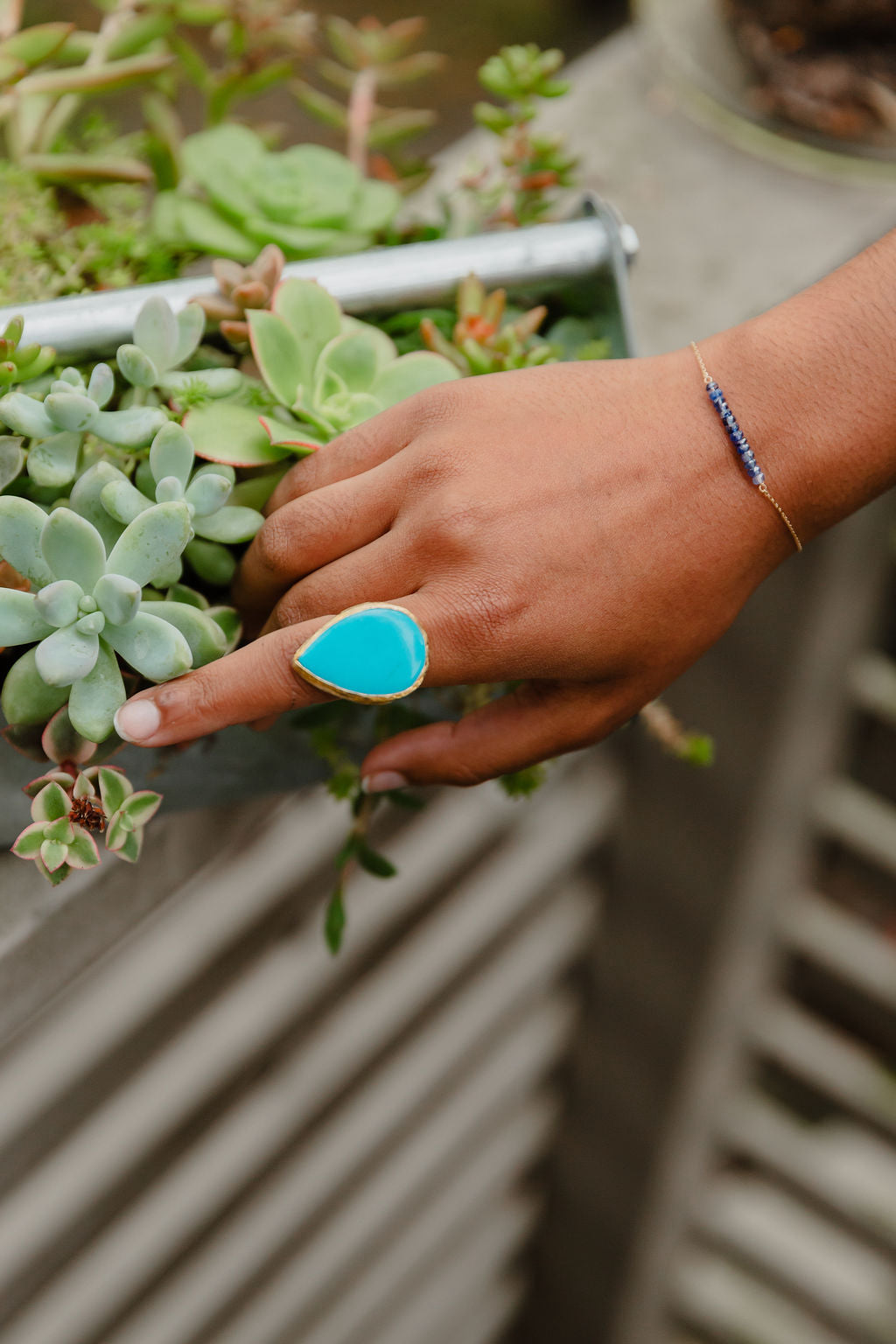 Small sapphire bead bracelet and 14k gold fill adjustable bracelet. Beautiful and can fit all wrist sizes, great as a gift to others or self!