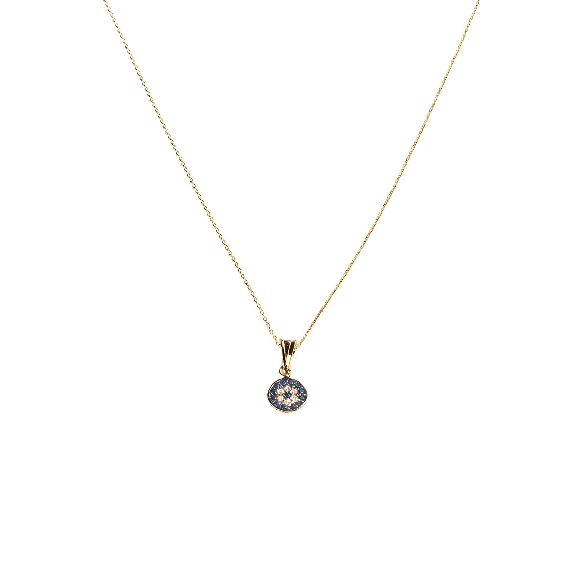 Infuse your style with protection and elegance through this small sapphire modern good aka evil eye pendant necklace.