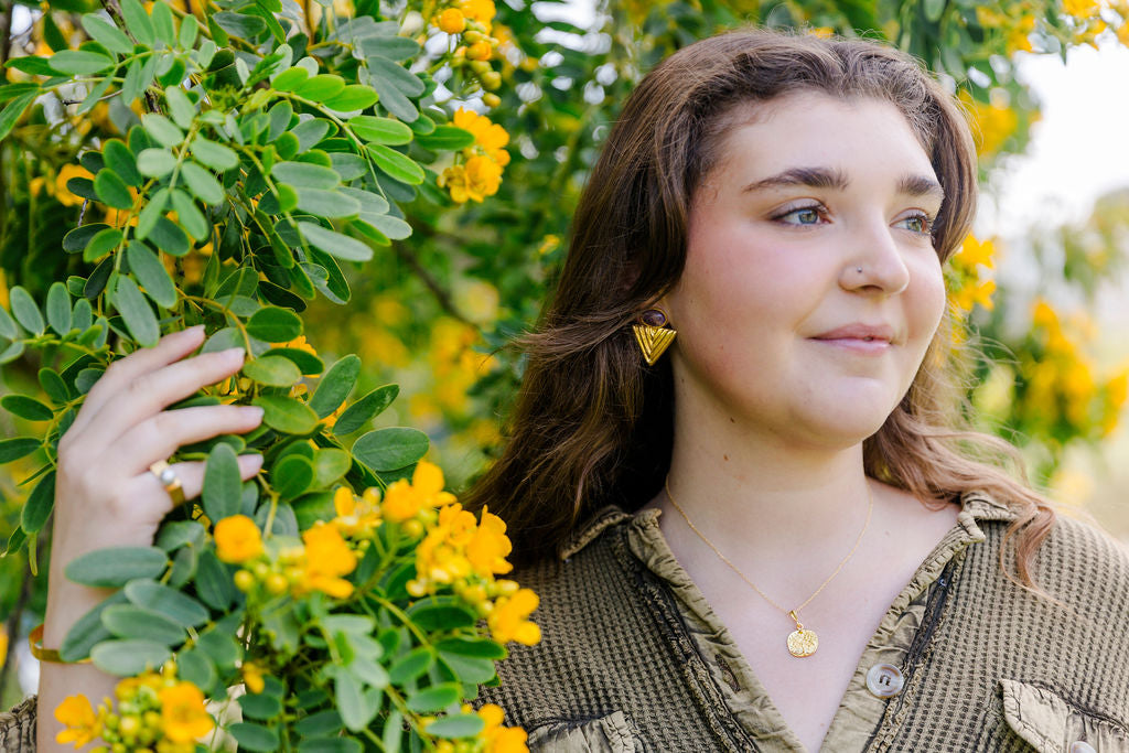 Make a bold yet refined statement with our Amethyst and Triangle Gold Vermeil Post Earrings — where geometric design meets the serene beauty of nature.