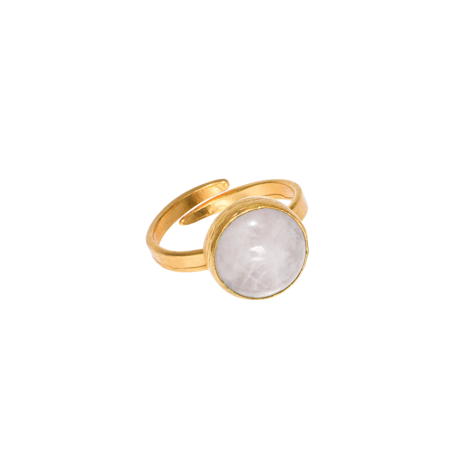 Illuminate your look with our Round Moonstone Adjustable Ring, featuring a beautiful moonstone set in 24k gold-filled band. Handcrafted for both style and comfort, this ring is a timeless piece that captures the charm of the moon.