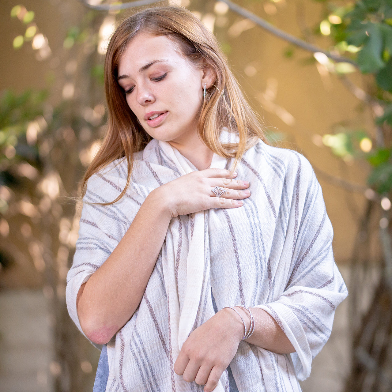 Scarf - Pashmina - Off White & Grey