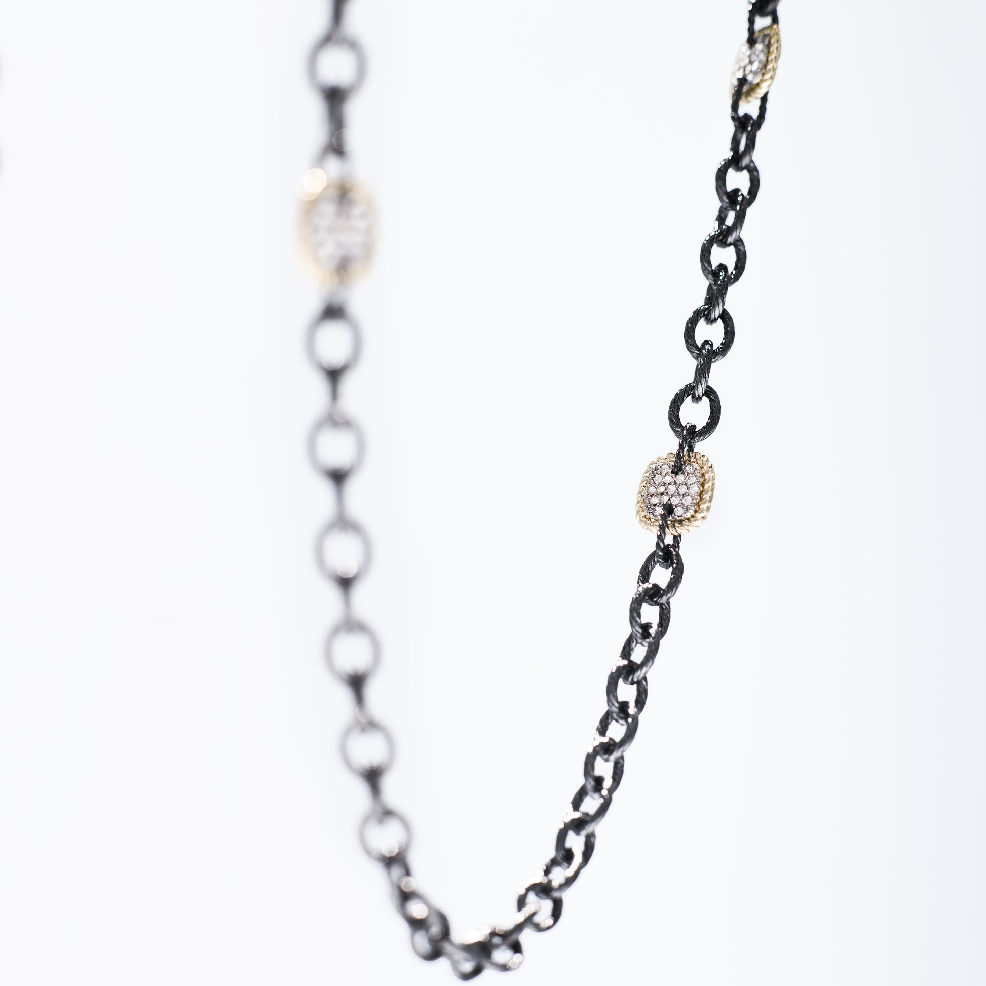 Crystal Square 14k Gold Fill and Oxidized Silver Long Necklace